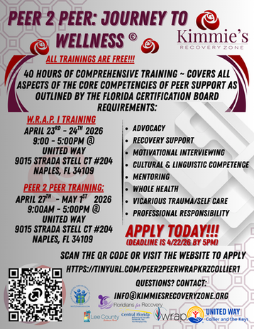 Kimmie's Recovery Zone empowers and serves our community by providing multiple pathways of recovery support, designing wellness plans, public education, advocacy policies, and resources to increase the quality of long-term recovery from mental health and substance use disorders.